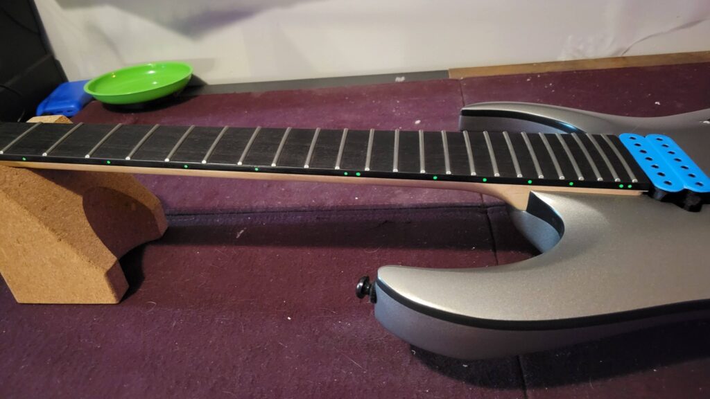 Side dots on a guitar might seem like a small detail, but they make a huge difference when it comes to visibility and playability. Over the years, there have been plenty of videos showing different side dot mods, usually involving decals, nail polish, or paint intended for crosshairs. Unfortunately, I haven’t had much success with any of those methods, especially the stickers. They work fine until you actually start playing, then they slide around and leave sticky residue all over the neck. I’ve also had poor results with luminescent side dot material on factory guitars. It doesn’t stay charged for long, and when it isn’t glowing, it’s actually harder to see than standard side dots.